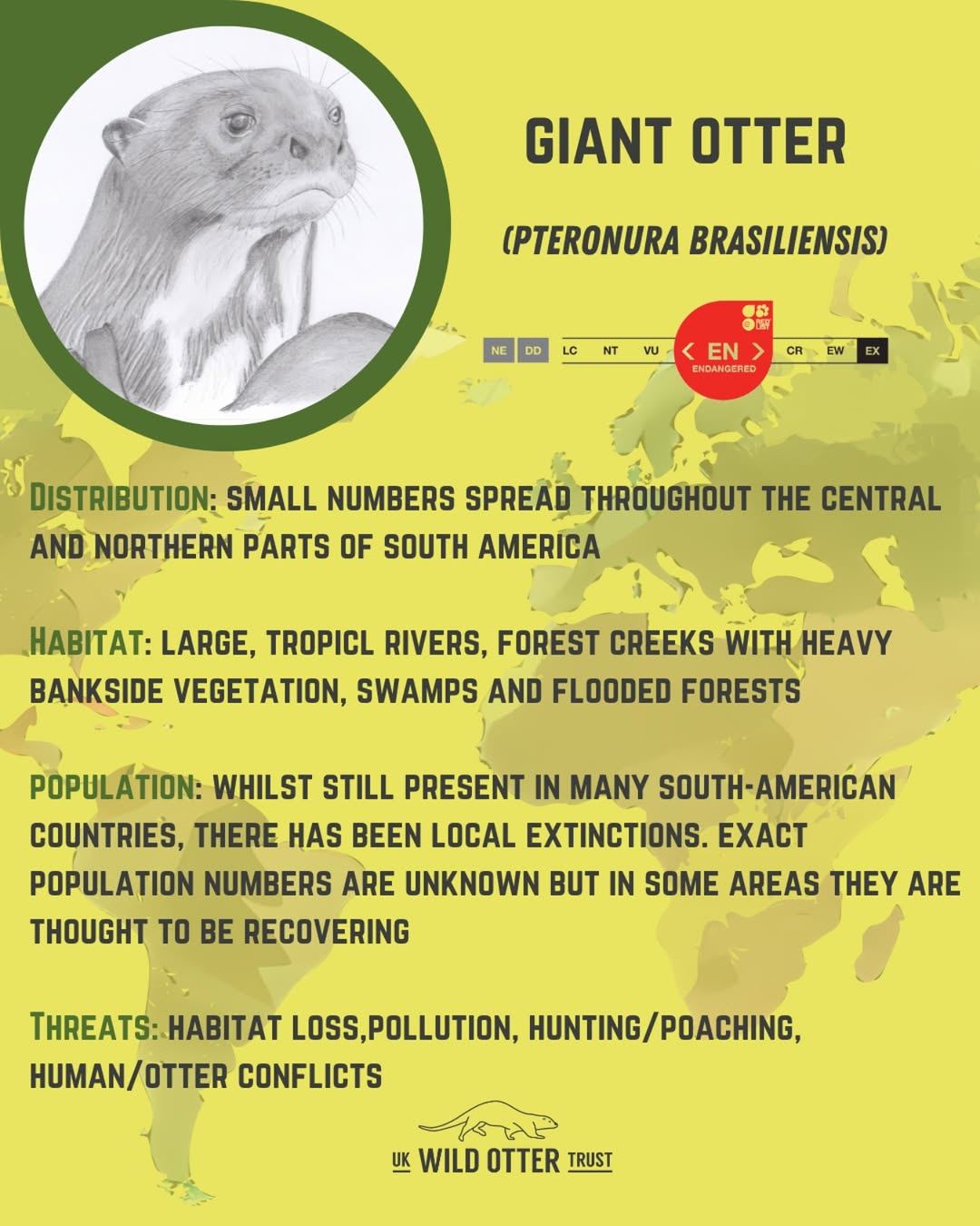 In March, 2024 a new species of otter named ‘Neotropical otter’ was recognised. There has been little information released about the new species. Once we have more information we’ll add an infomation sheet about the 14th species as well.